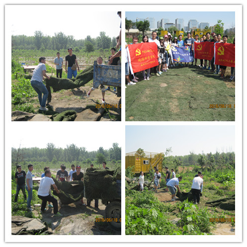 此次活动有党支部党员、预备党员和积极分子、院研会成员等23人参加,大家于早上九点到达太阳村农场,在农场负责人的指导帮助下开展义务劳动。此次劳动主要内容是帮助清理堆积已久的草皮,并整齐地铺在庄稼间的人行路上。大家听完支部书记的安排,就立马热火朝天的干起来。头顶35℃的烈日,也没有阻挡大伙劳动的热情。大家齐心协力把重达十几斤的草皮运到三轮车上,再由三轮车运往庄稼间的人行路上。男生分成若干小组,分别将厚重的草皮抬上车,他们喊着“一二三,一二三”的口号,一个小时左右,便将所有的草皮运转到目的地。随后,女生也不甘示弱,一起将草皮一块块的平铺在路上,不一会儿,坑坑洼洼的泥土地变成了绿油油整齐地“绿色”马路。大家干的卖力,不一会儿就汗流浃背了。农场负责人看着大家出色的表现,脸上一直挂着满意地笑容。大约上午十一点半,大家全部干完安排的农场的工作。在离开农场前,大家同农场负责人道别,负责人夸赞道:“中国天天色天天的同学们都是好样的,大家在义务劳动中身体力行,不只喊口号。体现了天天色天天的党支部勤奋、务实的优秀党风,欢迎大家今后常来农场做客”。随后,大家便乘坐公交车一起返回学校。结束了此次义务劳动之行。
