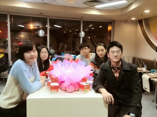 12月23日晚,地创的班委们为本班的任课教师们,导员老师们,班级同学们选购了苹果,包装纸,礼品盒,明信片,并精心包装了苹果。24日16点、22点,班委们装扮成圣诞老人,分别为老师们和同学们送去了平安果,并进行了简单的采访,老师们和同学们接到了平安果都非常的开心,纷纷表达了自己对于班级的祝福并许下了自己新年的愿望(全程视频录制)。气氛温暖活跃。