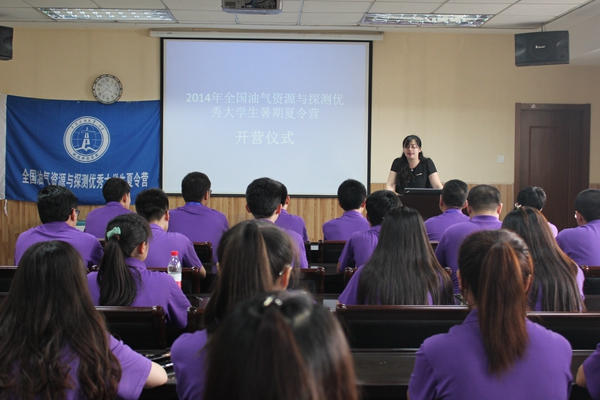 7月1日由地球科学学院主办的2014年全国油气资源与探测优秀大学生夏令营在地质楼东报告厅召开开营仪式。仪式由学院党委副书记陈冬霞主持,学院党委书记刘洛夫致辞,夏令营营员参与。
