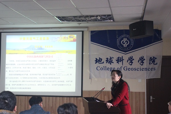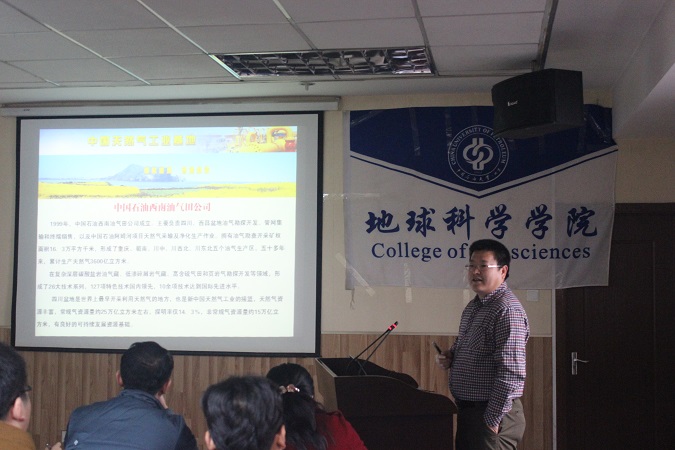 2015年11月19日,应地球科学学院党委副书记陈冬霞老师邀请,中国石油西南油气田勘探院勘探所党支部书记、副所长唐大海来校为我院师生作题为《四川盆地油气勘探主要地质认识与实践》的学术报告,报告由陈冬霞老师主持。