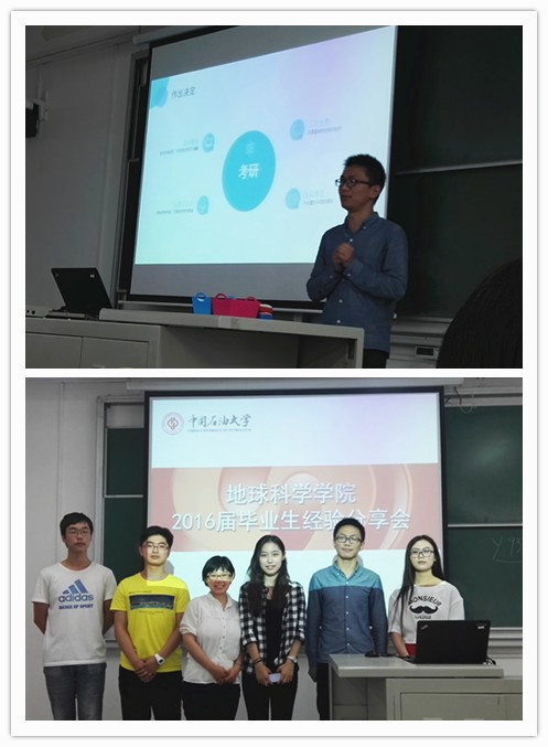 5月23日下午,地球科学学院2016届毕业生就业经验分享会在第三教学楼109教室举行,会议由费葳葳老师主持。2016届5名优秀本科生应邀出席,结合自身的就业经验与学弟学妹们做了交流分享,为即将面临选择的大三学生提供了宝贵的经验资源。