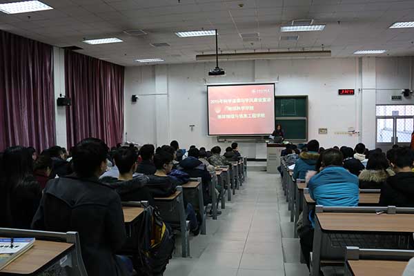 12月5日下午,由石大地球科学学院和地球物理与信息工程学院联合开展的研究生学风与学术道德宣讲活动在地质楼新1教室举行,地球物理与信息学院教授李景叶、青年教师谢豪、地球科学学院青年教师赖锦、2016年李四光优秀研究生奖获得者甘叔玮应邀为两院研究生做报告。