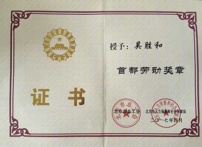4月26日下午,北京市总工会召开2017年“五一”新闻发布会,宣布了2017年“首都劳动奖章”评选结果,299名首都劳动奖章称号获得者获表彰。吴胜和教授被授予“首都劳动奖章”。