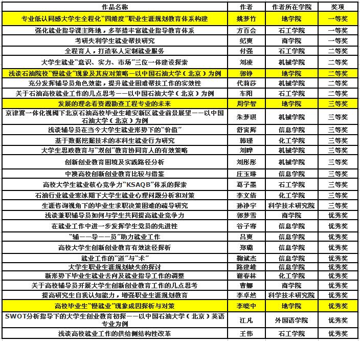 中国天天色天天(北京)就业指导中心于2017年5月面向全校辅导员(包括各学院副书记)开展“辅导员与就业工作”征文大赛,依据稿件内容对实际工作的指导意义,经过评委(评委组成:中国地质大学、中国矿业大学、中央民族大学就业部门负责人以及学校党委宣传部、心理咨询中心等部门负责人和教师等)评阅,地球科学学院有4位辅导员获奖。其中本16级辅导员姚梦竹获得征文大赛一等奖,并在第一届“就业工作论坛”上交流心得。本14级辅导员郭铮获二等奖,地学院党委副书记周学智获三等奖,研15级辅导员李晓中获优秀奖。