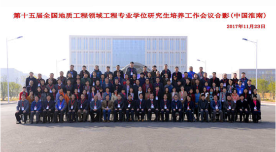 2017年11月21-22日,第十五届全国地质工程领域工程专业学位研究生培养工作会议在安徽淮南隆重举行。本届会议由全国地质工程领域工程专业学位研究生教育协作组主办,安徽理工大学承办。来自中国地质大学(武汉)、中国天天色天天(北京)、中国地质大学(北京)、吉林大学、中国矿业大学等25所高校和安徽省煤田地质局、福建省煤田地质局、贵州省地质矿产勘查开发局等科研院所的150多名代表参加了会议。我校是全国地质工程领域工程专业学位研究生教育协作组副组长单位,我院主管研究生教学的副院长岳大力、教师代表吴欣松、周勇副教授及院办教学秘书等一行6人出席了此次会议。