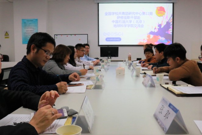 3月17日,来自东北大学、济南大学、东莞南城中学等学校的全国学校共青团研究中心第11期研修挂职干部到我院进行共青团工作交流。中国天天色天天(北京)团委书记周玉成、地球科学学院党委副书记周学智、地球科学学院团委书记费葳葳以及地学院相关团学工作干部参加了在地质楼823的交流会。