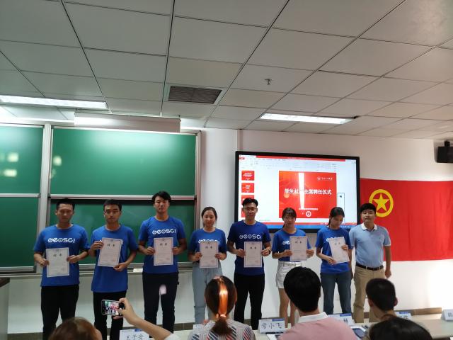 最后进行了地球科学学院学生社团主席聘任仪式,我院辅导员王天、姚梦竹和常小飞为社团副主席颁发聘书,我院党委副书记周学智为社团主席颁发聘书。我院学生会主席葛贝琦作为社团主席代表进行发言,葛贝琦表示全院学生社团定当全力以赴,服务学生,砥砺前行,不负期望。我院党委副书记周学智进行总结致辞,周学智首先对学生社团的工作表示肯定,要求学生干部将学院的社团发展与“双一流”建设相匹配,培养社团文化,打造向上、向正、向好的社团发展模式,同时激励全院学生干部挥洒青春风采、彰显团学魅力,在任期留下光辉灿烂的一笔,助力地学院团学工作再创辉煌。