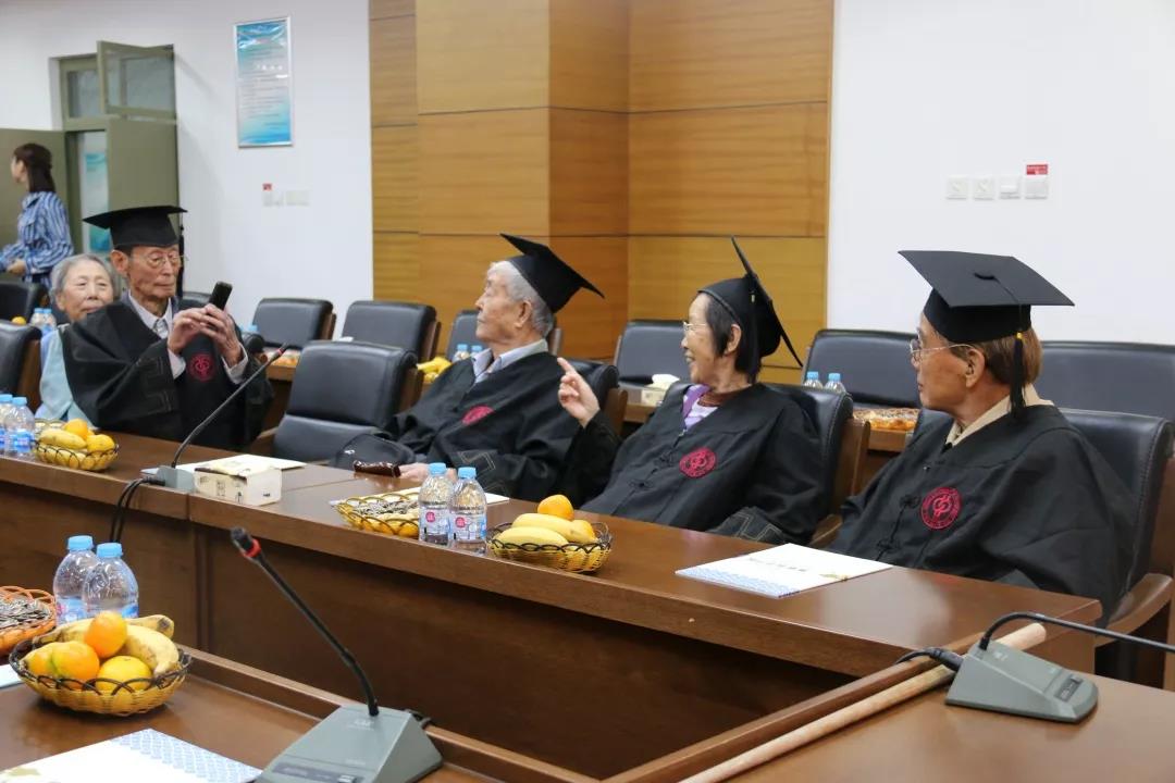离退休老校友与往昔同学一同穿上学士服,忆往昔峥嵘岁月稠,恰同学少年风华正茂,校友们仿佛回到十年前刚刚步入母校的模样,仍是那白衣飘飘的少年。