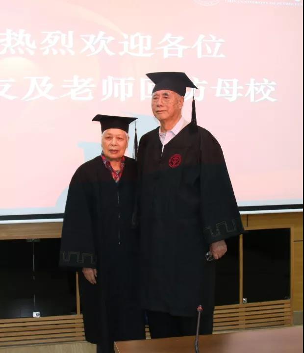 地球科学学院特地为返校的校友们准备了学士服,让他们重新穿上学士服,重温学生时代的光辉岁月,与母校合影留念。