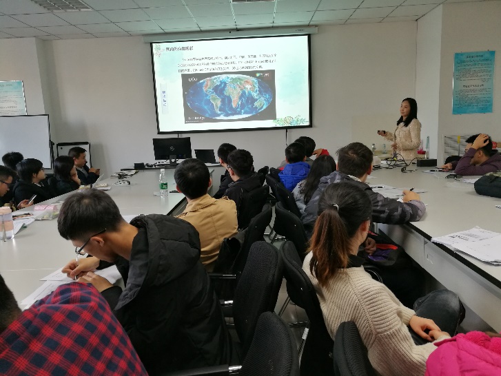 贾达吉博士长期从事石油地质和油田信息化技术研究和应用,设计开发的国际海洋划界系统整合了3DGIS技术、外大陆架划界地质研究和海洋划界法律研究,在3DGIS的应用方面有丰富的经验。贾博士带来了3D投影仪及3D观影眼镜,在沙龙开始前请与会师生观看精彩的3D图片。沙龙开始后,首先介绍了3DGIS(三维地理信息系统)技术及其运用的广泛性及重要性,联合实例指出国内外应用主要集中在智慧油田、智慧城市、防灾减灾、板块运动等领域,接着以“油气勘探数字地形及地理影像应用研究”及“外大陆架划界与国际海底资源关系评估辅助决策系统”两个项目为例,同时展示项目的3D图像资料,强调3DGIS在地学研究中应用的重要性。贾博士认为未来3DGIS将会发展为4DGIS,并在物联网、5G传输、云计算、移动互联网、区块链等科技领域得到飞速发展。