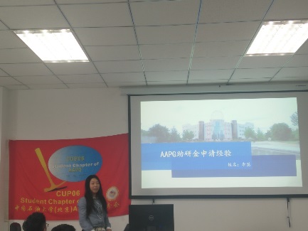 2019年5月16日下午,地球科学学院AAPG学生分会在地质楼823举办了IBA竞赛&AAPG助研金申请经验分享交流会。