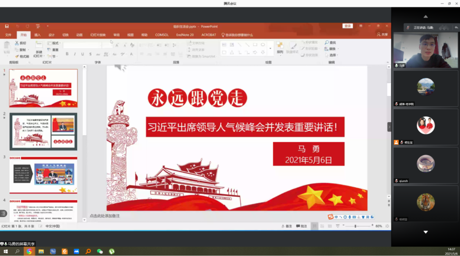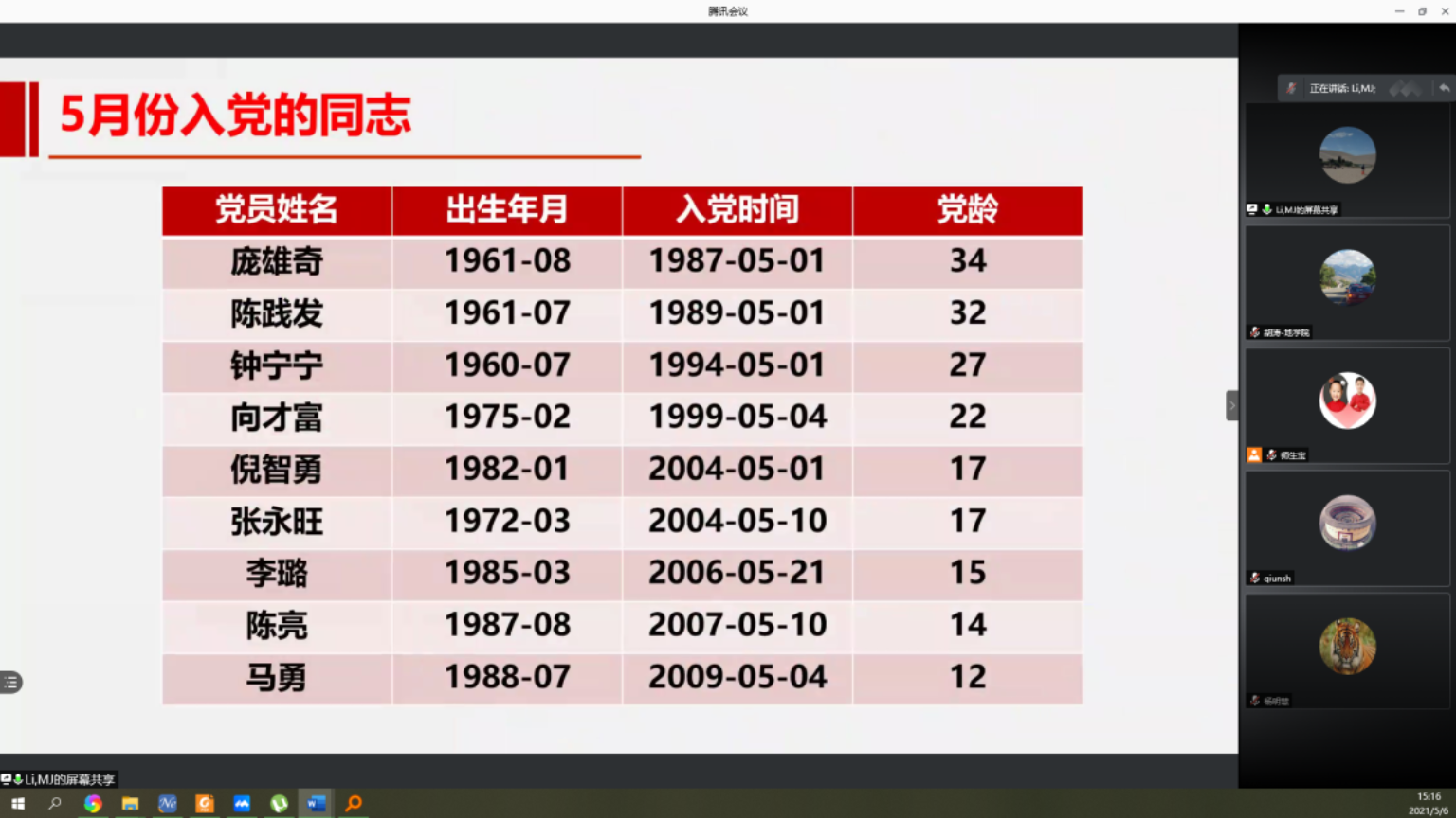 2021年5月6日下午,地球科学学院盆地与油藏研究中心教工党支部以腾讯会议方式召开线上组织生活暨教职工政治理论学习,支部34名党员参加了会议。