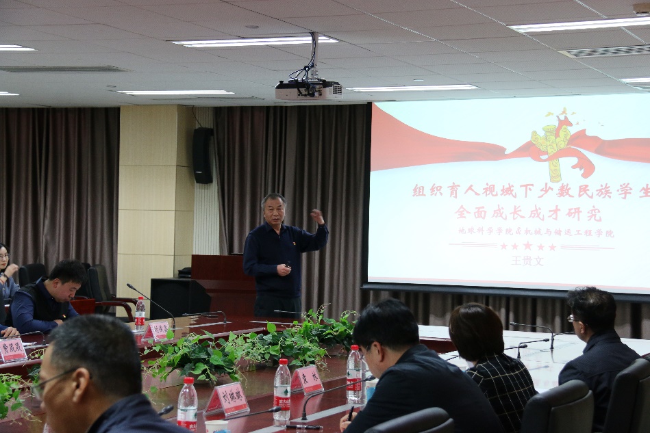报告会上,王贵文围绕少数民族学生群体成长成才主题,从组织育人视角分析了项目研究的重要意义、当前存在的重要问题、研究基础与工作进展以及工作计划和预期成效,阐述了项目的创新特色、预期取得的成果。评审专家以少数民族学生群体发展党员工作为切入点,结合研究课题的理论性、实践性、科学性,就项目进展过程中如何聚焦重点、优化思路、落地实践等方面提出了意见和建议。