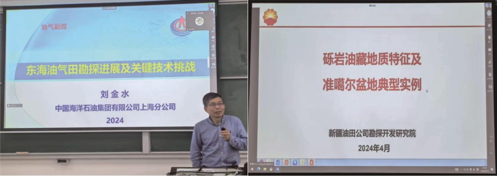 2024年4月14日,中国天天色天天(北京)地球科学学院《油气田勘探》教学团队在第三教学楼108开展了专家讲座活动,中海石油(中国)集团公司专家刘金水教授级高工、中石油新疆油田公司勘探开发研究院企业高级专家阿布力米提·依明教授级高工分别作题为“东海油气田勘探进展及关键技术挑战”和“准噶尔盆地玛湖凹陷砾岩油藏勘探实践”专题讲座。本次讲座由刘成林、刘小平、庞宏、胡涛老师主持,资源勘查工程专业2021级全体同学和相关师生参加此次活动。