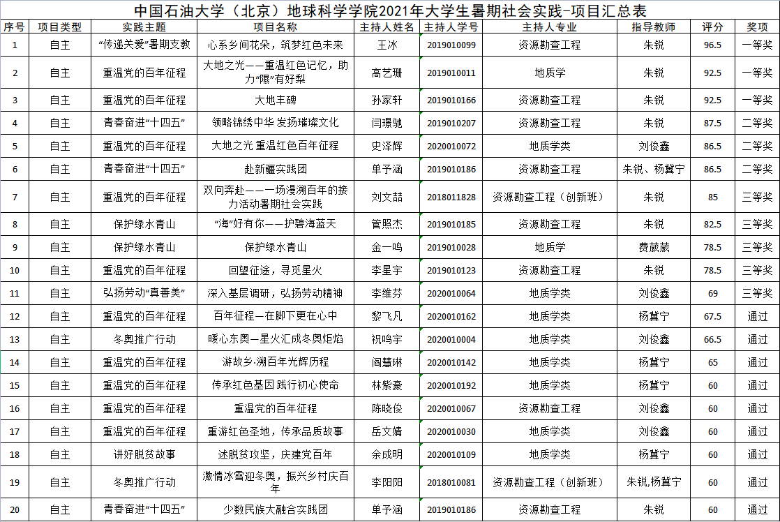 恰逢建党百年之际,地球科学学院在“三全育人”试点建设的背景下,通过全方位、立体化实践培养体系,以社会实践为纽带,结合《地球科学学院大学生社会实践护照》打卡模式的创生,切实开展各类培训工作,营造良好的社会实践氛围,培养同学们通过社会实践认识社会、提升能力,做到在实践中受教育、长才干、做贡献。