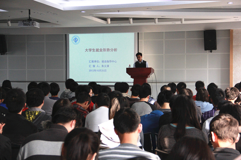 2012年10月25日下午,地学院于校活动中心就业报告厅召开2013届毕业生就业动员大会。我校就业指导中心朱义清老师、地学院党委副书记陈冬霞老师以及2013届全体毕业生参与了此次会议。