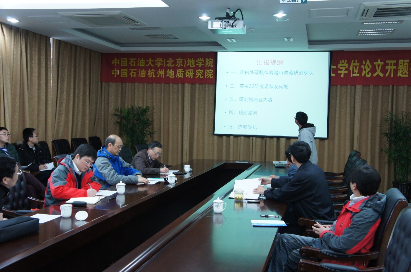 3月20日、23日,在地学院分党委书记刘洛夫、研究生工作主管院长季汉成的带领下,以及学院相关学科教授一行,分别前往中石油勘探开发研究院西北分院、杭州地质研究院举行2011级专业学位硕士论文开题报告会。