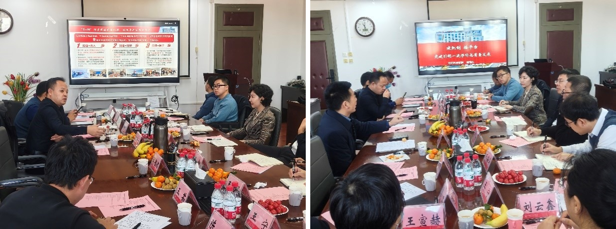 刘钰铭副院长详细介绍了我院本科方面的教学及招生;姜福杰书记就2024年我院如何以党建为引领,发挥党委统筹全局,构建党建引领基层治理新范式,重点抓党建工作、发挥基层组织战斗力,持续推动“一融双高”落地,推动党建与学院事业双融双促协调发展进行了介绍。接下来与东北天天色天天地球科学学院老师们就党建特色活动、人才培养及学科建设等方面进行了深入的交流。