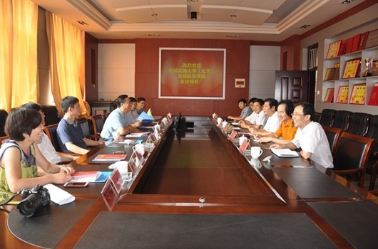 会后,院长柳广弟率队到山东科技大学地球科学学院进行了走访。走访期间,与该学院领导班子成员进行了座谈。座谈会上,柳广弟院长和山东科技大学地球科学学院魏久传院长互相介绍了学院的办学历史、专业设置、师资队伍及教学科研等方面的情况,表示希望今后进一步加强交流,共同发展,并就如何培养高素质人才、如何加强地学学科建设等问题进行了深入探讨。座谈会结束后,柳广弟一行参观了该学院的地球科学馆。
