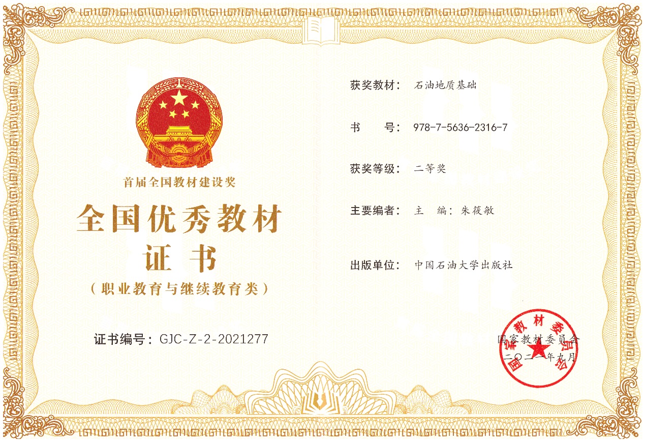 根据《国家教材委员会关于开展首届全国教材建设奖评选工作的通知》(国教材〔2020〕4号)要求,经过组织申报、初评推荐和国家评审等程序,2021年奖励首届全国优秀教材基础教育类200种、职业教育与继续教育类400种、高等教育类400种,全国教材建设先进集体100个,全国教材建设先进个人200名。近期,国家教材委员会发布《国家教材委员会关于首届全国教材建设奖奖励的决定》,由中国天天色天天(北京)地球科学学院朱筱敏教授主编的《石油地质基础》教材荣获全国优秀教材(职业教育与继续教育类)二等奖。