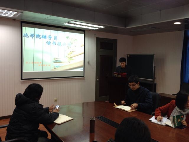 10月31日下午,地球科学学院在地质楼1105组织开展了“辅导员读书报告会”。地学院读书报告会每两周举办一次,旨在加强辅导员的思想交流,促进辅导员能力的全面提高。地学院党委书记刘洛夫、团委书记周学智及全体辅导员参加了此次会议。