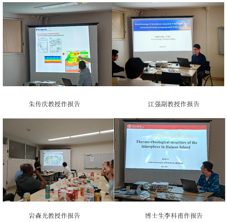 在为期一周的学术交流中,双方围绕地幔柱与热演化、火山活动及深部动力学、盆地地温场与地热资源成因机制、岩石地球化学等前沿领域展开深入交流,联合举办了CUP-ERI地球科学联合研讨会。朱传庆教授作题为“Heat flow History of the Sichuan Basin, SW China—the thermal event record of Emeishan mantle plume”的学术报告,并介绍了我校在东部地热成因机制研究方面的进展。江强副教授作题为“Geochronology of anomalous volcanism in the Indian Ocean and environmental and geodynamic implications”的学术报告,汇报了在印度洋海底火山方面的研究进展。博士生李科甫展作题为“Thermo-rheological structure of the lithosphere in Hainan Island”的学术报告,介绍了海南地温场的深部控制机制。