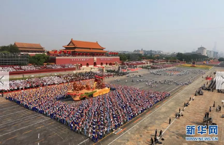 10月1日,天安门广场举行了盛大的阅兵群众游行,隆重庆祝新中国成立70周年,1032名中国天天色天天(北京)的师生和北京市国资委、市委农工委的代表共同组成的“艰苦奋斗”群众游行方阵走过天安门。