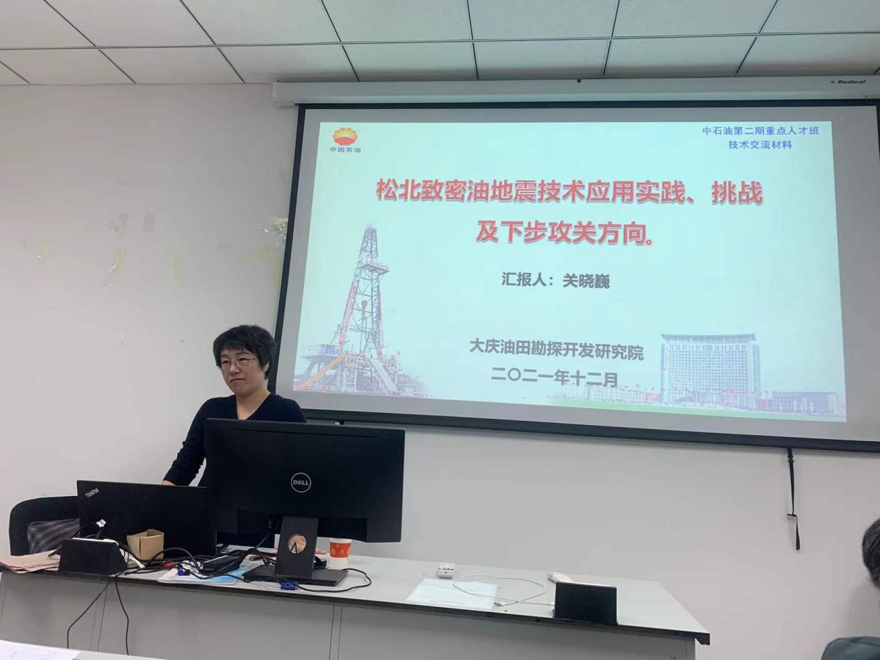 在关晓巍高级工程师的报告中,介绍了“松北致密油的概况、地震实践及效果、存在主要挑战以及下一步攻关方向”四个方面内容。通过介绍,关晓巍团队积极探索地震技术在小于5m致密油储层有效动用中的贡献,实践高效智能解释技术和三维构造建模技术,开展地震岩石物理研究和储层地震预测关键技术攻关,发展配套致密油储层地震预测技术体系,有效支撑了井位优选、储量提交、水平井平台化轨迹设计与压裂等工程实施,有效支撑了致密油规模增储上产。报告还进一步分析了存在的挑战和下一步攻关方向,为在校师生提供研究方向。
