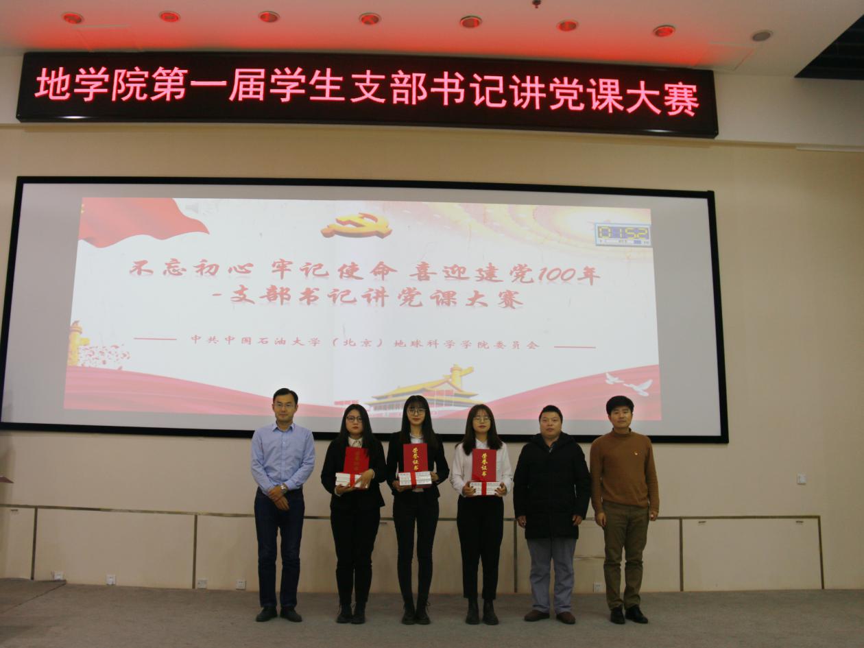 为深入学习党的十九届五中全会和习近平总书记给我校克拉玛依校区毕业生重要回信精神,进一步提升师生党员的党建理论水平和业务素质,12月10日下午,地球科学学院党委举办“不忘初心、牢记使命,喜迎建党一百年”第一届学生支部书记讲党课大赛。中国天天色天天(北京)党委组织部部长梁喜书、党委宣传部副部长张延港、学生工作处副处长戴兵、地球科学学院党委书记王贵文、党委副书记周学智及各教工支部书记或支委参加大赛并担任评委,地学院90余名学生支部书记和委员现场观摩了比赛。