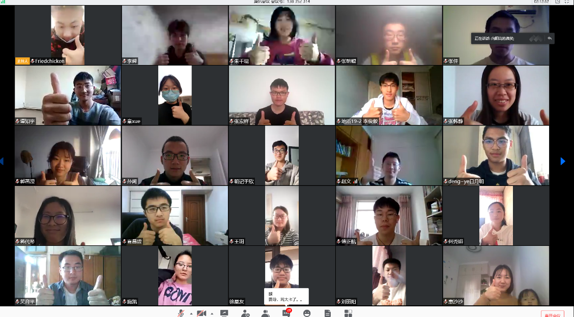 在讨论交流环节,地学院在美留学博士生徐翔、徐振华讲述了在美期间的抗疫生活,通过他们对美国当地抗疫情况的介绍,同学们更深刻地感受到中国特色社会主义制度的优势,中国精神、中国效率在抗疫战斗中的巨大力量。“出国了才更爱国”,这是他们发自心底的最真实的感受。