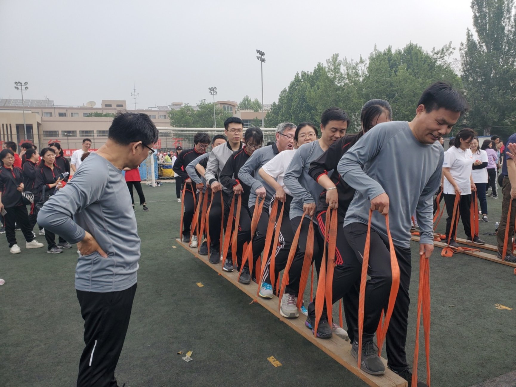 我院教职工共有200余人次参加了彩排、开幕式和个人和集体项目,是近些年来参加运动会人数最多的一次。教职工单独参加了袋鼠跳、能量传输线等6个集体项目,与学生一起参加了彩虹飞舞和摸石头过河2个师生集体混合项目,另外有11名教职工参加了男、女4×100米接力田径项目和男、女1500米个人田径项目。我院教职工26人次在能量传输线、毛毛虫竞速、摸石过河和男子4×100米接力等4个项目取得了好名次。运动员们在赛场上挥洒汗水,团结合作,顽强拼搏,超越自我,充分展现了学院奋发向上、团结一致、永创一流、献身石油的理念和精神风貌。