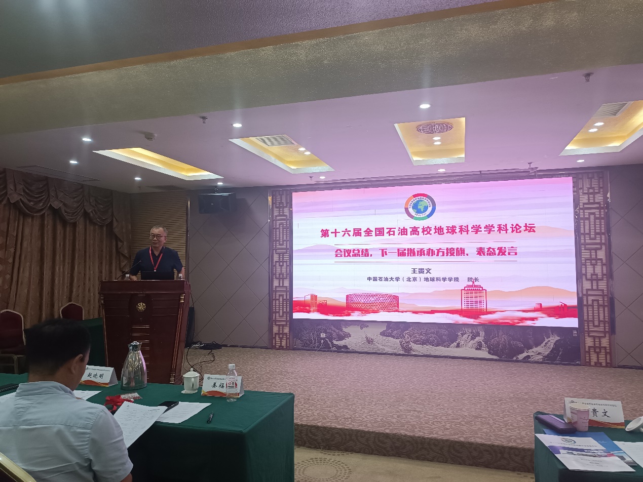 地球科学学院书记姜福杰应邀作了论坛发起单位代表致辞;副院长刘钰铭和牛花朋分别作了题为《一流学科建设背景下资源勘查工程专业人才培养体系构建与成效》和《产教融合打造高质量专业学位研究生课程体系》的专题报告;院长王贵文进行了会议总结,同时宣布下一届会议由西南天天色天天承办并进行了授旗仪式。