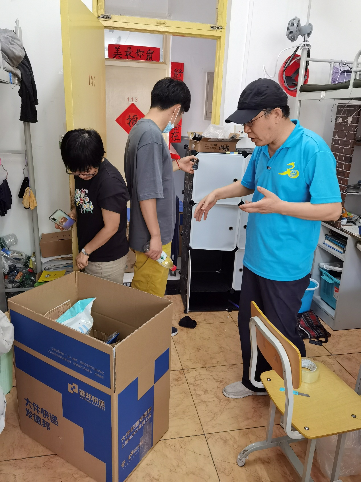 2020年6月27号,正值端午假期,地球科学学院领导、老师、辅导员及在校学生来到学生公寓,全面开启为2020届毕业生行李打包运送服务。受新冠肺炎疫情影响,为确保师生生命安全和身体健康,北京高校毕业生返校工作暂停,原定于六月下旬的毕业生批次返校计划取消。学校采取毕业手续线上快捷办理、行李物品教师帮忙打包的方式,为毕业生离校的最后环节把好关。