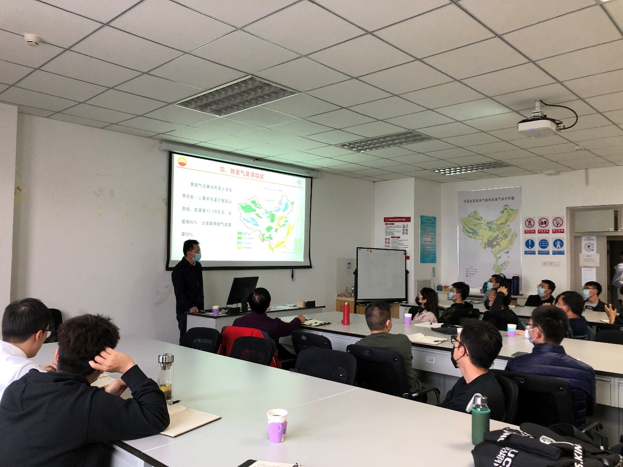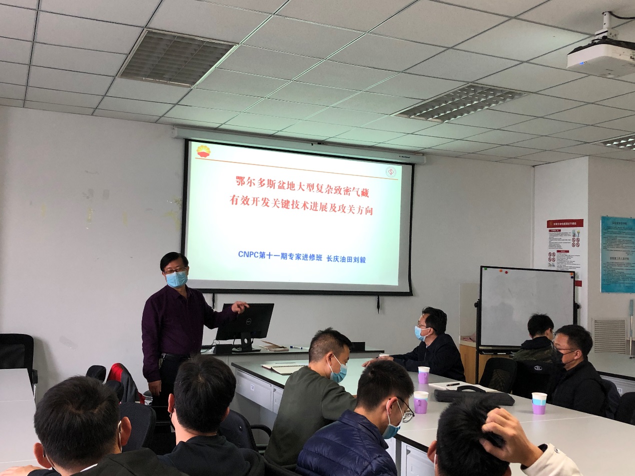 2021年11月18日下午,地球科学学院油气勘探与开发地质系邀请长庆油田公司首席技术专家刘毅教授级高工,在地质楼823开展了主题为“鄂尔多斯盆地大型复杂致密气藏有效开发关键技术进展及攻关方向”的学术报告,由系书记高岗教授主持,我校五十多位师生及数位企业专家到场参加了本次学术沙龙。