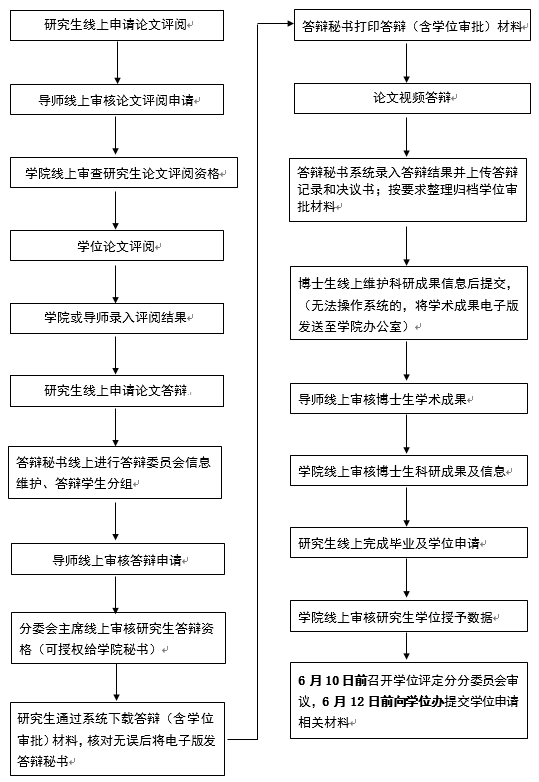 根据当前疫情防控工作精神和学校工作安排,为做好2020届毕业生答辩及学位授予工作,现对学位论文送审、答辩、学位申请等工作安排如下(详见本文档附件一):