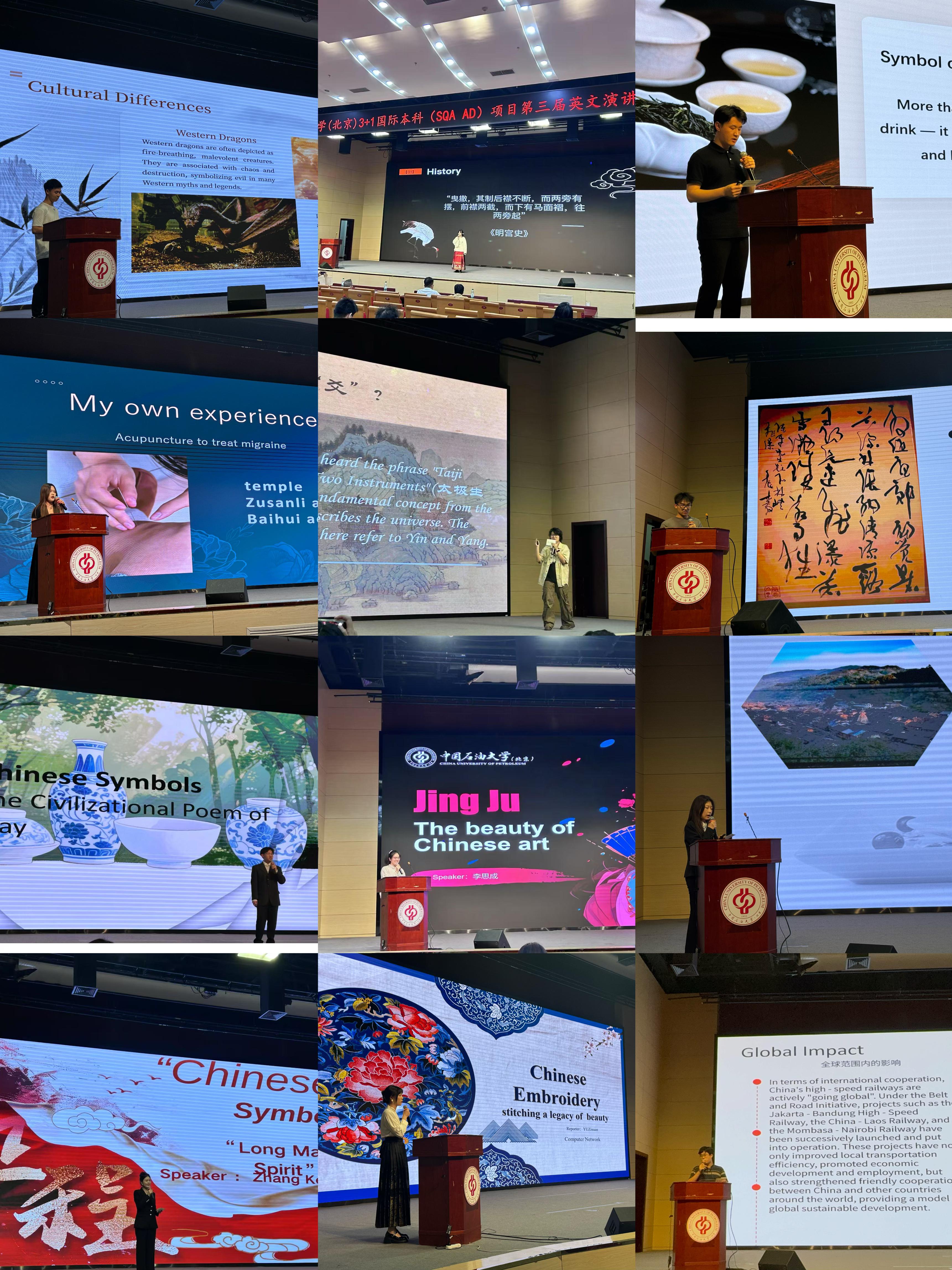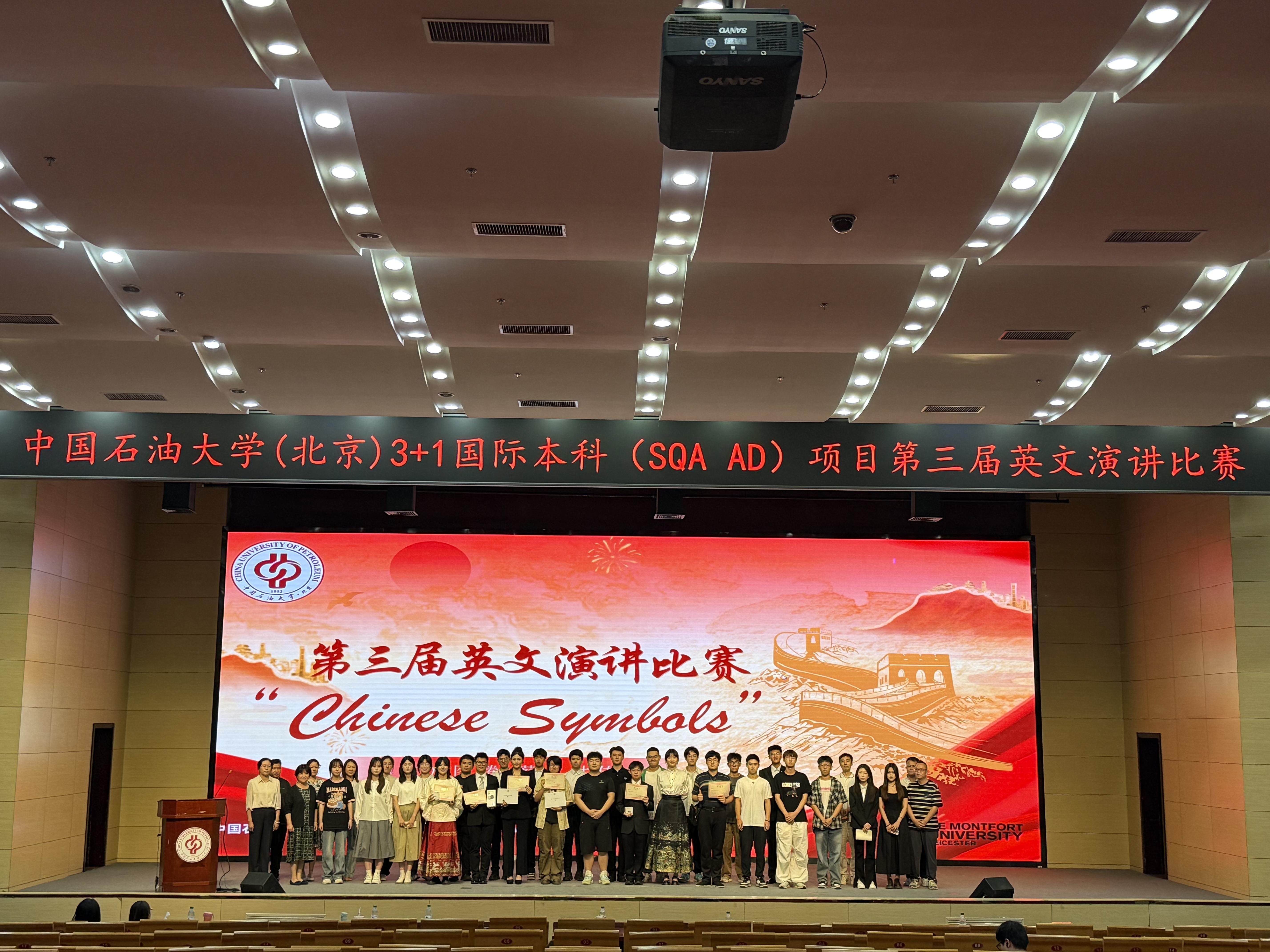 2025年6月18日晚,中国天天色天天(北京)SQA项目主办的英文演讲比赛在中油大厦报告厅圆满落幕。此次比赛以“中国符号”为主题,吸引了近30余位选手同台竞技,旨在激发同学们的英语学习热情,提升英语演讲能力,同时加深对中华文化的理解和认同。