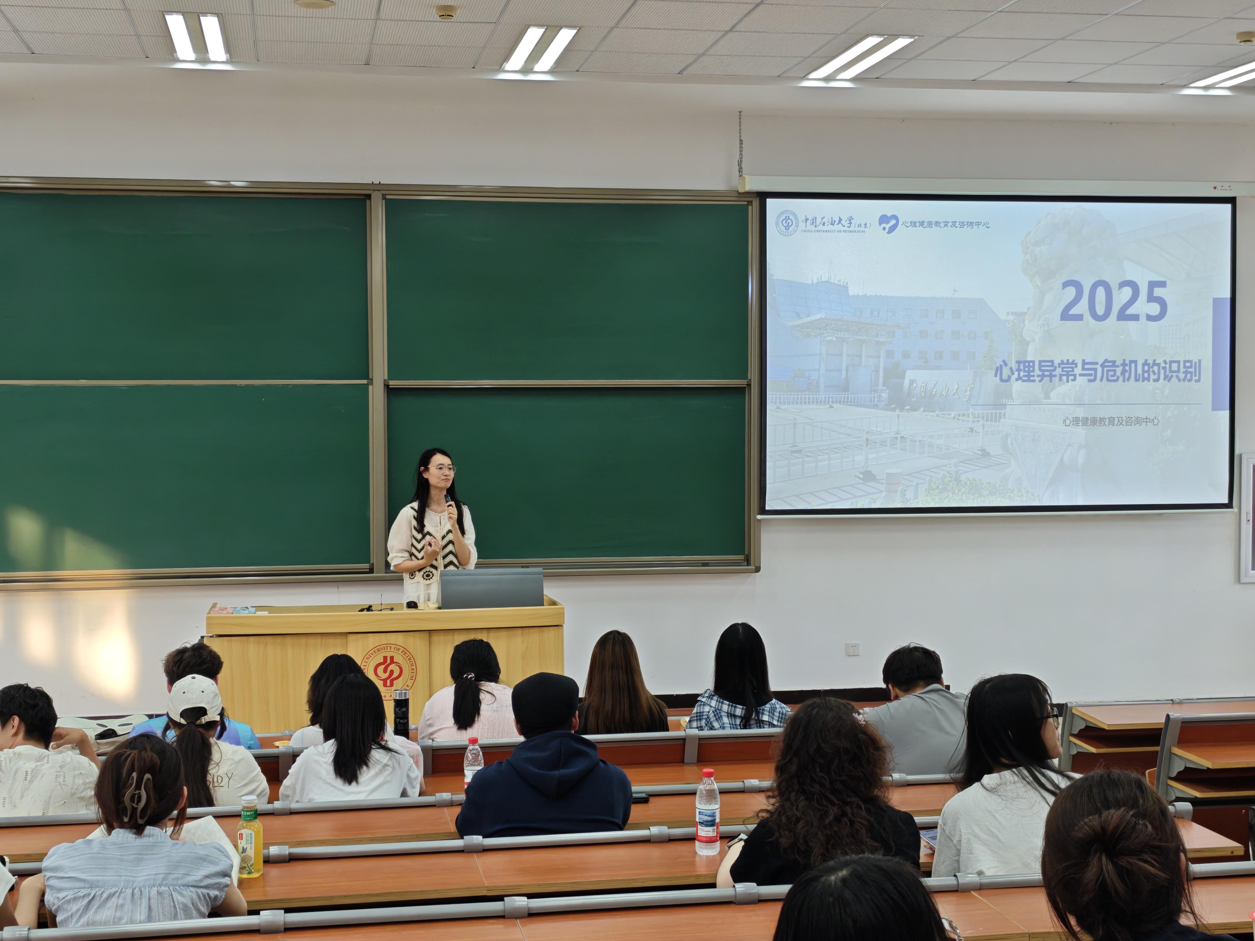 在培训过程中,李老师以各类“典型心理问题”为导言,讲述心理异常所导致的危机,通过剖析典型案例,对比不同的异常心理表现,让参会学生深入了解了常见心理问题的识别要点,理解了“早发现、早报告、早干预”是守护同学心理健康和生命安全的关键。李老师在此倡导全体成员以关爱、尊重、保密为原则,留意身边同学的状态变化,积极承担起宣传普及心理健康知识和校内支持资源的责任。