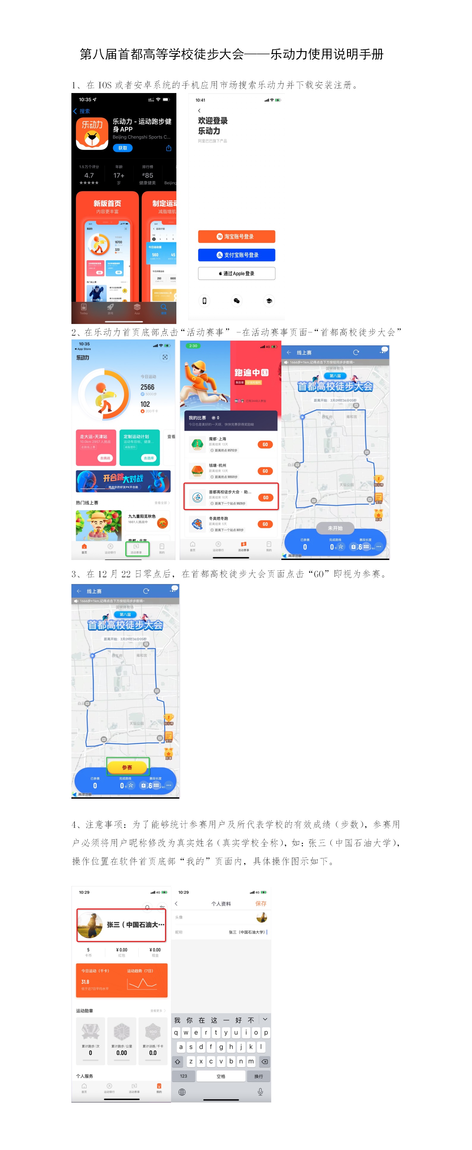 1.第八届首都高校徒步大会——乐动力软件使用方法见附件。