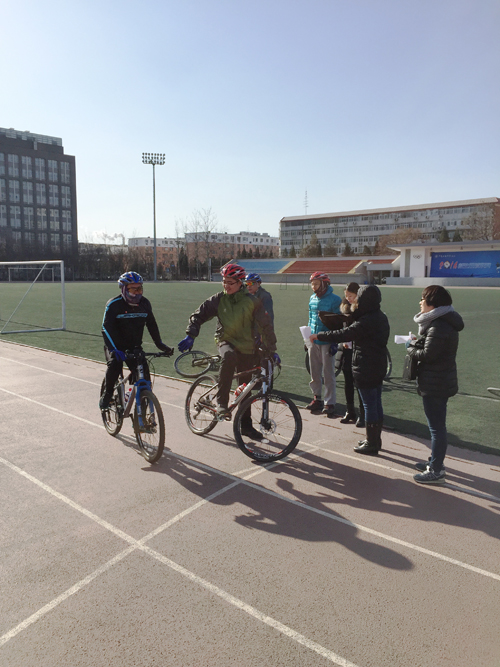 1月16日,教职工自行车协会在红旗操场举办校内骑行接力赛。按照比赛规程,参赛队员分为两组,进行接力,每位队员要完成两公里的骑行距离(操场五圈),并参与业务知识答题环节。完成全部赛程用时最短的小组获胜,如果答题错误将被给予加时15秒的处罚。