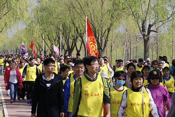 4月9日,中国天天色天天(北京)第五届教职工“走向健康”长走活动在昌平区滨河公园举行。校党委副书记刚文哲,副校长吴小林以及600余名石大教职工和中国天天色天天附属小学部分教职工参加了活动。