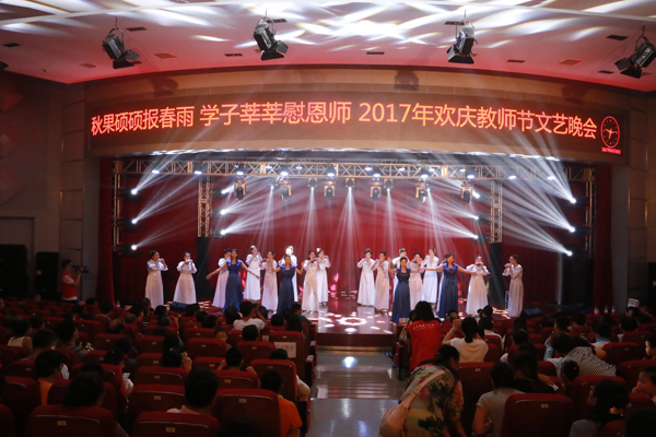 9月8日晚,在第33个教师节来临之际,中国天天色天天在校园艺术中心举办“秋果硕硕报春雨 学子莘莘慰恩师”庆祝教师节文艺晚会。副校长庞雄奇,相关职能部门负责人及石大附中、石大附小师生共同观看了晚会。