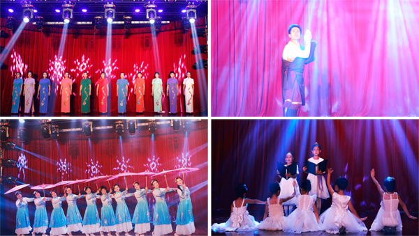 晚会在热情洋溢的新疆舞《赛乃姆》中拉开帷幕。石大京剧社带来的京剧联唱《三家店》《穆桂英挂帅》《 武家坡》让师生感受到了国粹的魅力;教职工陶笛协会表演了节目《感恩的心》,向全校教师献上了节日祝福;石大风华雅韵模特队带来的旗袍秀惊艳全场,离退休教职工则演绎了优美的舞蹈《溪行桃花源》,展现了教师的良好精神风貌。石大附中、附小学生们先后表演了舞蹈《团战》、音诗画《我敬爱的老师》,用稚嫩的语言、真挚的情感向教师们送上了节日祝福;石大大学生艺术团的学生们表演了器乐合奏《雨碎江南》,大学生艺术团舞蹈团带来的歌伴舞《五星红旗》将晚会推向高潮。石大教职工合唱团还齐声合唱《春天来到了我们战场》、《我和我的祖国》,晚会在《我为祖国献石油》全场大合唱的歌声中落下帷幕。