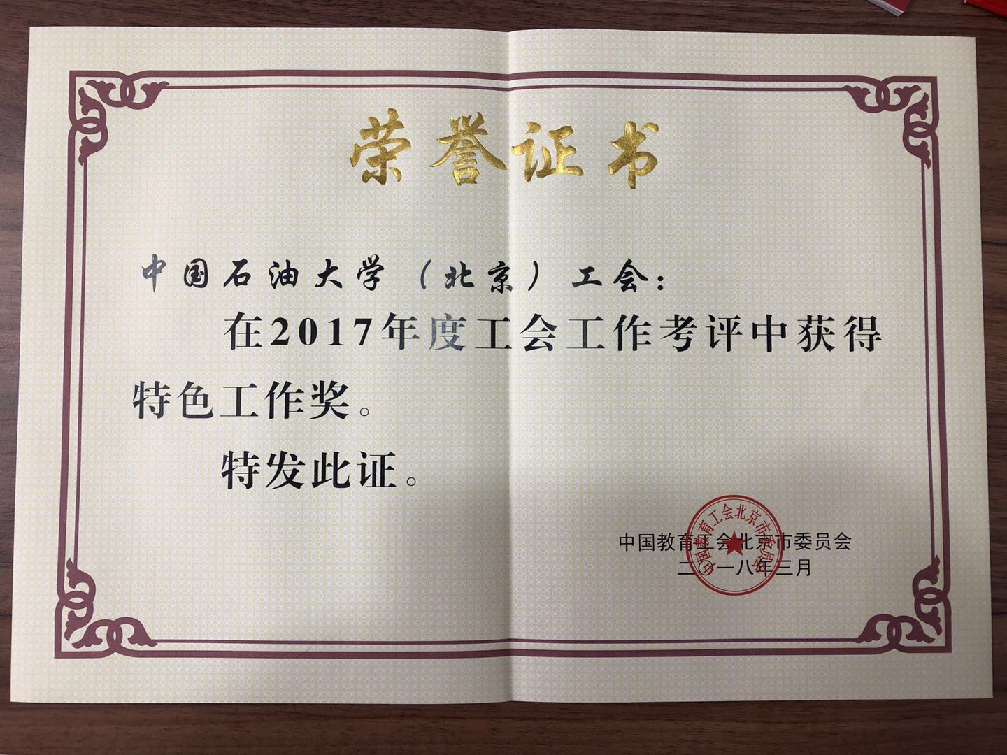 石大工会荣获2017年度工会工作“综合考评奖”和“特色工作奖” |
