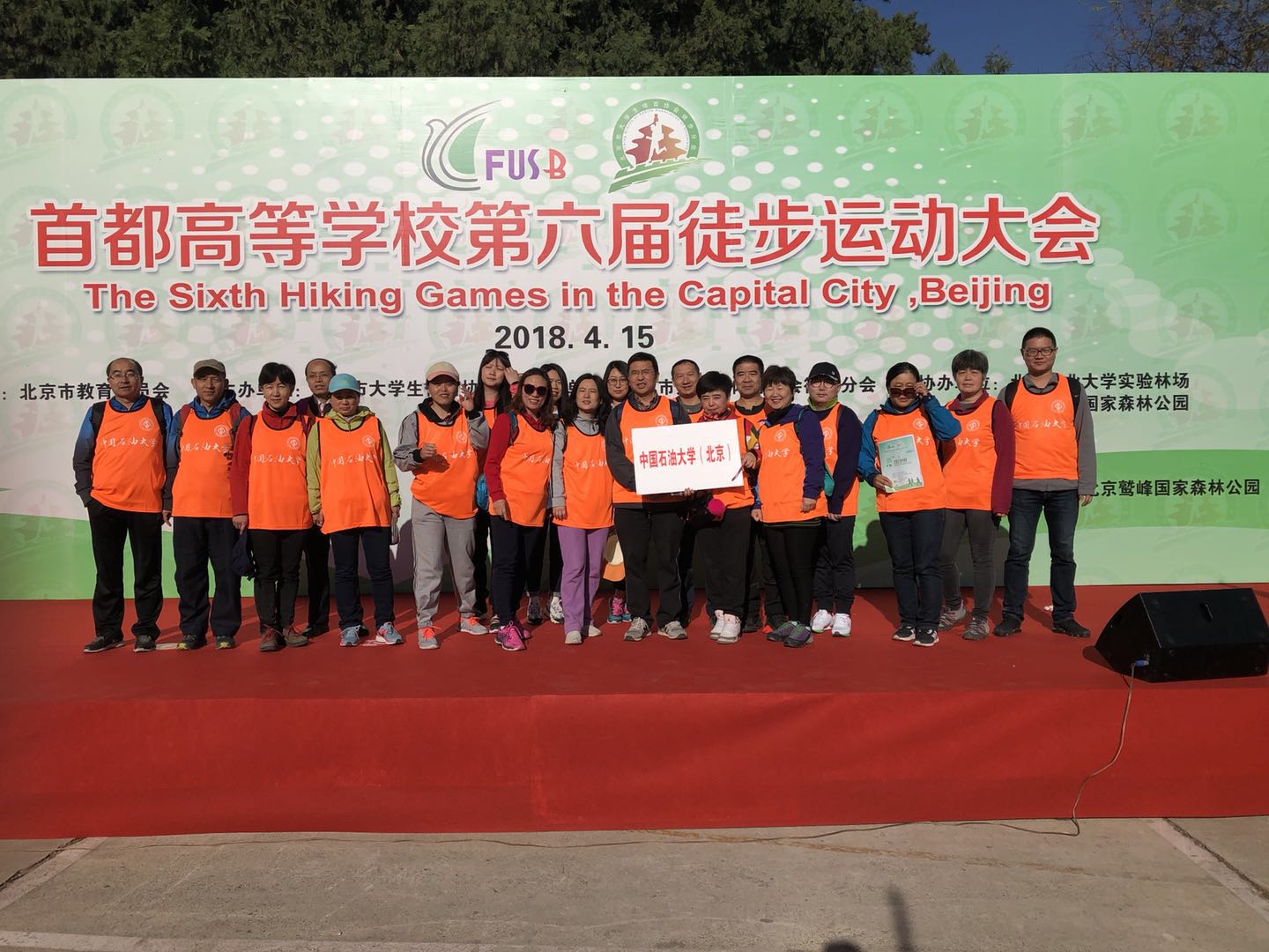 4月15日上午,首都高等学校第六届徒步运动大会在北京鹫峰森林公园举行,来自北京市38所高校的师生出席了开幕式,我校学生队和教工队两支队伍共计40人参加了本届徒步运动大会。活动过程中我校师生合力完成了10公里徒步和集体闯关两个项目,最终荣获集体闯关二等奖和最佳组织奖。