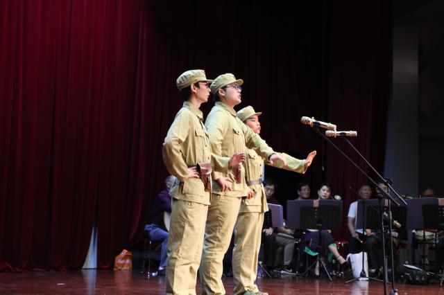 晚会在一首韵律优美,意境悠长的“梨花颂”中拉开帷幕,由学生带来的“三家店”、“打龙袍”、“奇袭白虎团”、“武家坡”掌声连连。“唱支山歌给党听”、“江姐”、“空城计”、“沙家浜”、、、一举一动、一指一看,喜、怒、哀、乐,尽显其中。“以形传神、形神兼备” 一曲曲经典虚实结合,超脱了时空的限制,诉说着国人骨子里含蓄且稳健,精致而典雅的精神品格,为全体观众带来了一场视听结合的盛宴。