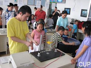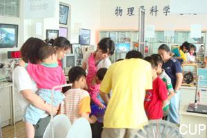 校工会特聘请了6名物理实验室的工作人员为孩子们进行讲解,共接待我校职工子女110多名,孩子们在家长的陪同下兴高采烈地来到展示厅,生动有趣的物理现象深深地吸引了他们,孩子们争先恐后地观察、操作,参观过程中,孩子们兴致高昂,热烈讨论,有的就一些现象提出问题,在场的工作人员尽力做出了令人满意的解释。参观过程持续了三个多小时,参观结束后还有很多孩子舍不得离开,他们围住工作人员,探讨着物理世界的神奇奥秘。很多家长对此次活动纷纷表示感谢,此次活动让小朋友们度过了一个愉快而有意义的节日。