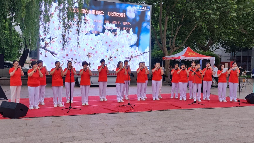 音乐会以学生二班的《望春风》开场。随后,教工陶笛协会复管班演奏了《丹尼哥》,单管班表演了《龙的传人》,离退休器乐队献上《万疆》,重奏乐团演绎《北国之春》,赢得观众热烈掌声。