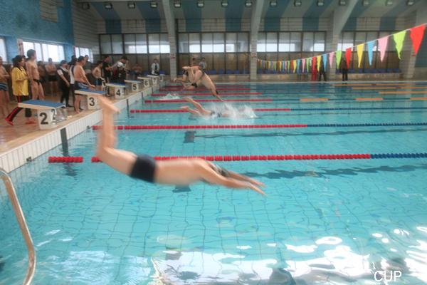 比赛分男、女六个组分别设立了100米蛙泳、100米自由泳、100米仰泳等个人项目和4×50米接力项目。比赛中运动员们身手矫健,很多选手的入水、转身动作标准流畅,显示出一定的技术功底。经过激烈角逐,各个项目比赛的获胜者脱颖而出。校工会对单项比赛项目前八名,集体比赛项目前四名获得者进行了奖励。