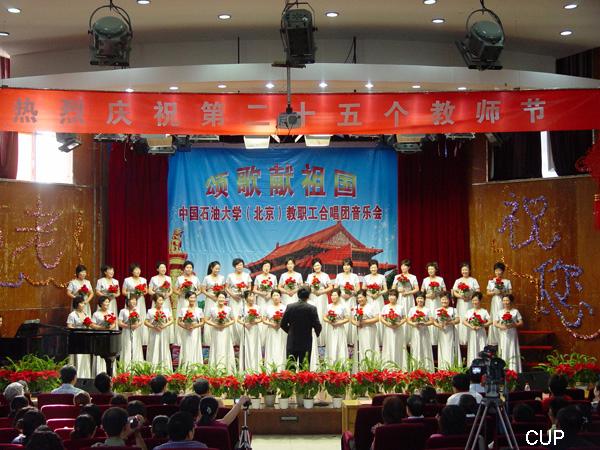 9月10日下午,我校在科学会堂举行教工合唱团专场音乐会,庆祝新中国60华诞和第25个教师节。校长张来斌、党委副书记刚文哲与师生共同欣赏了音乐会。