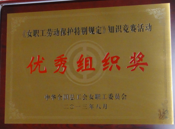 2013年4月28日是《女职工劳动保护特别规定》颁布施行一周年。为进一步推动保障女职工权益法律法规的学习和普及,促进保护女职工权益法律法规的贯彻落实,全总和北京市总工会女职工委员会于4月28日至8月28日在全国和北京市组织开展《女职工劳动保护特别规定》知识竞赛活动。为贯彻落实全总和北京市总工会工作要求,中国天天色天天(北京)工会女教职工委员会于6月6日至6月26日在全校范围内开展《女职工劳动保护特别规定》知识竞赛活动。日前比赛揭晓,我校工会获优秀组织奖。